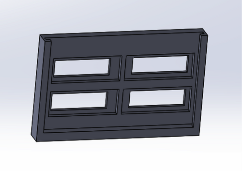 In order to determine whether we were able to measure fluorescence using the OralEye camera, we built a matrix that not only accommodated our water-soluble fluorophores, but also accommodated standard fluorescent microscope slides (and similarly-prepared, alternative fluorophores identified by the user). A three-dimensional rendering of the matrix, which was modeled after standard color calibration targets, is pictured in Figure 2. Performing measurements using the fluorescent calibration targets allowed us to determine whether we were able to measure any fluorescence at all, while performing similar measurements using our chosen fluorophores allowed us to attempt to measure and compare their respective fluorescence signals with the results obtained using the fluorometer.