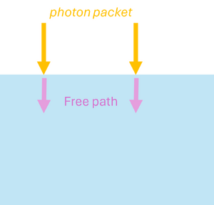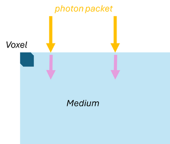 By repeating these steps for many photon packets, the simulation statistically reconstructs macroscopic quantities such as fluence, reflectance, and transmittance in the medium.